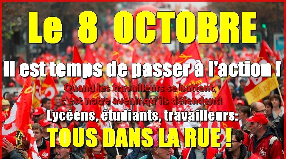 Grande journée de mobilisation, secteur privé - secteur public le jeudi 08 octobre Le plan patronal de liquidation des droits et des conquêtes sociales continue : donnons un avenir aux jeunes, passons à l’offensive !!