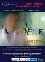 Projection débat du film « HORS D’ÊTRE » sur le thème de la lutte contre le chômage programmée ce mercredi 25 janvier 2017 au cinéma Bonne-Garde à Nantes.