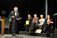 Les ancien-nes salarié-es de l’usine Thomson d’Angers et le SFA organisent un faux procès des dirigeants de Technicolor.